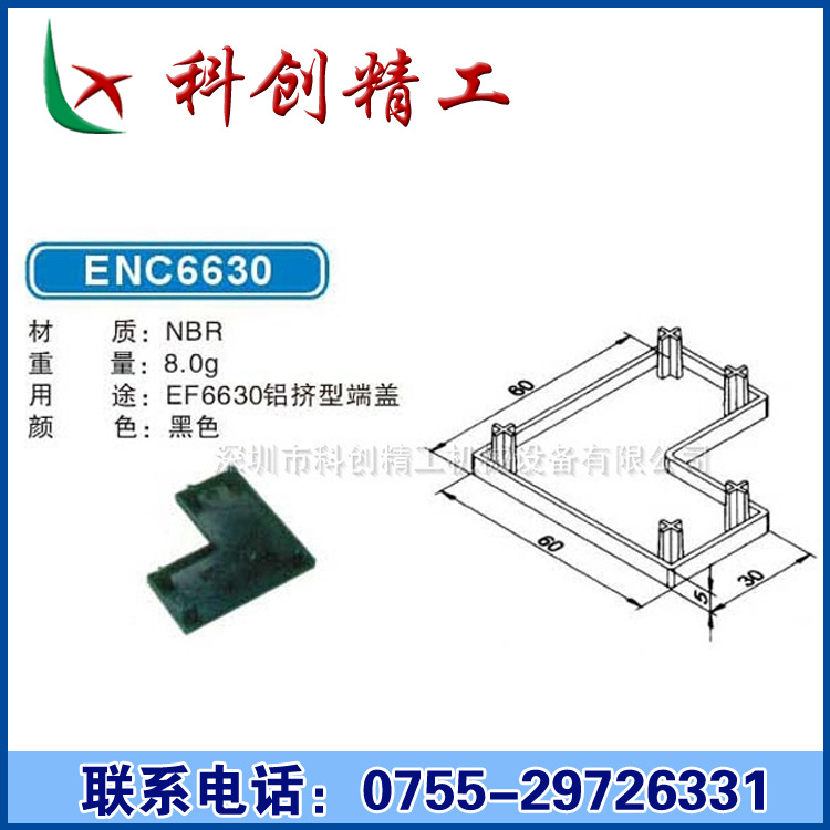 详细信息 科创机械集生产、设计、销售、服务为一体,专业生产工业铝型材、电泳铝型 材、铝型材机架、铝型材配件、工作桌、流水线的厂家.主要产品规格有:6,8系 列铝槽连接(有内锁和外锁两种),30,40,60,80角码,封盖,铝槽镶条,把手,合页 等 端盖6630 材 質:NBR 重 量:8.0g 用 途:EF6630鋁擠型端蓋 顏 色:黑色
